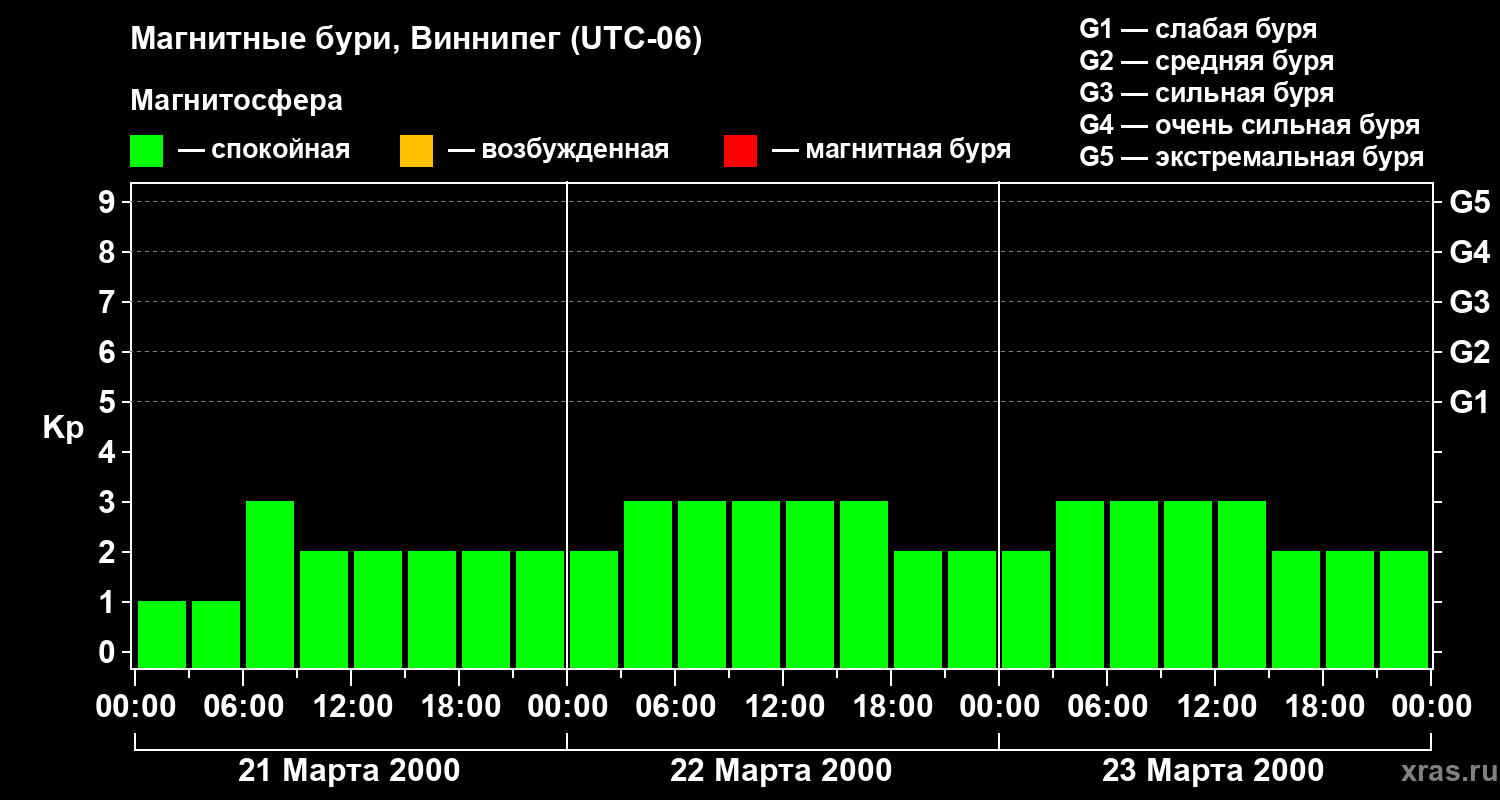 Магнитные бури в Виннипеге — 23 марта 2000 года