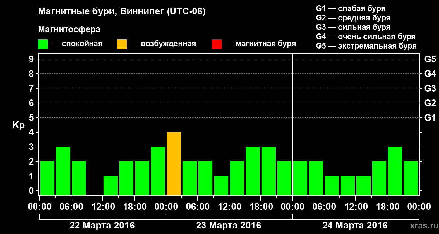 Магнитные бури в Виннипеге — 24 марта 2016 года