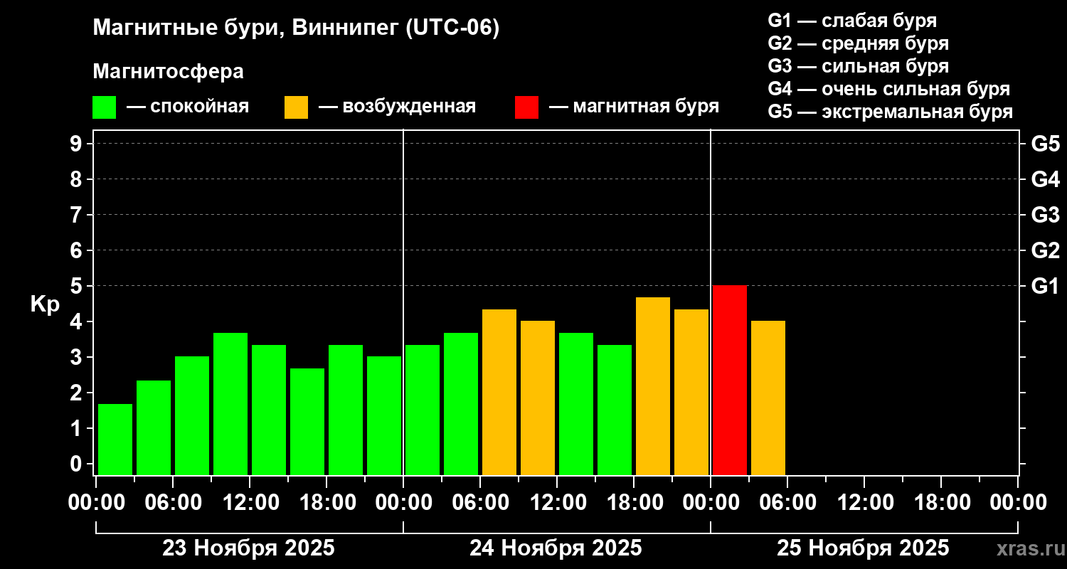 Магнитные бури в Виннипеге — 25 ноября 2025 года