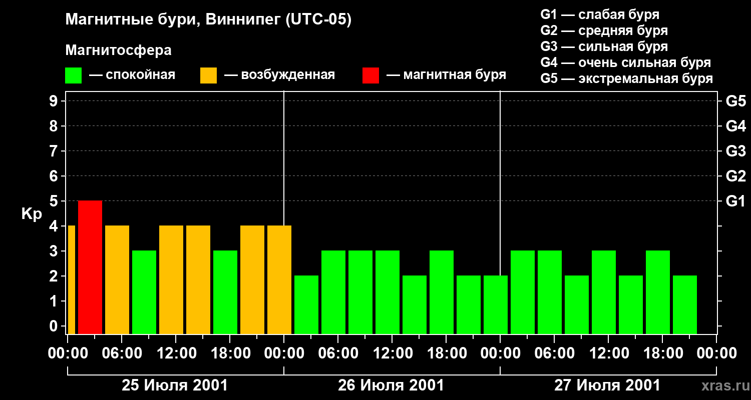 Магнитные бури в Виннипеге — 27 июля 2001 года