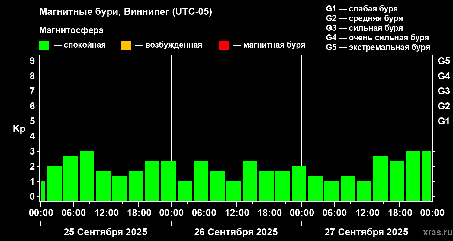 Магнитные бури в Виннипеге 27 сентября 2025 года