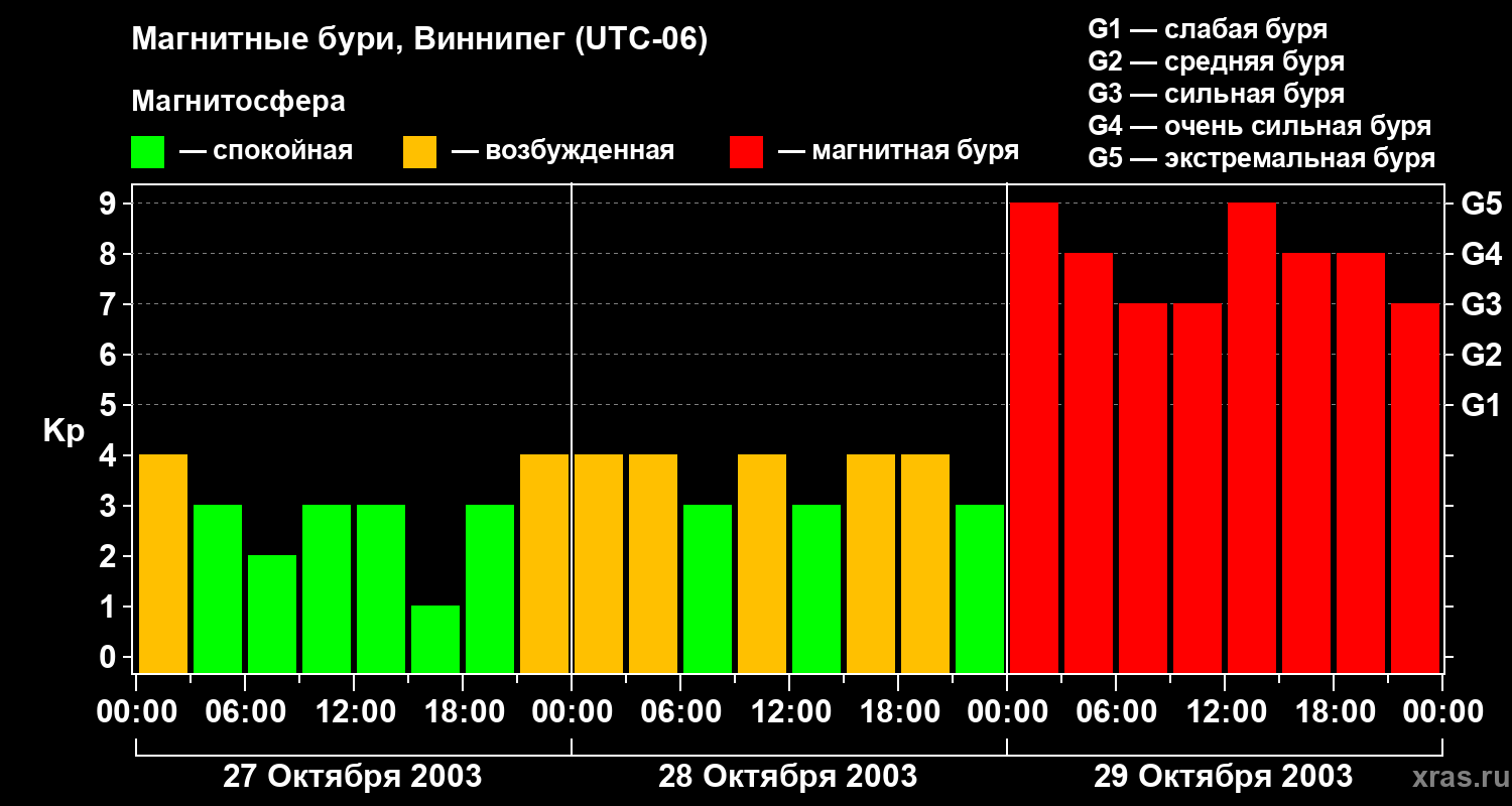 Магнитные бури в Виннипеге — 29 октября 2003 года
