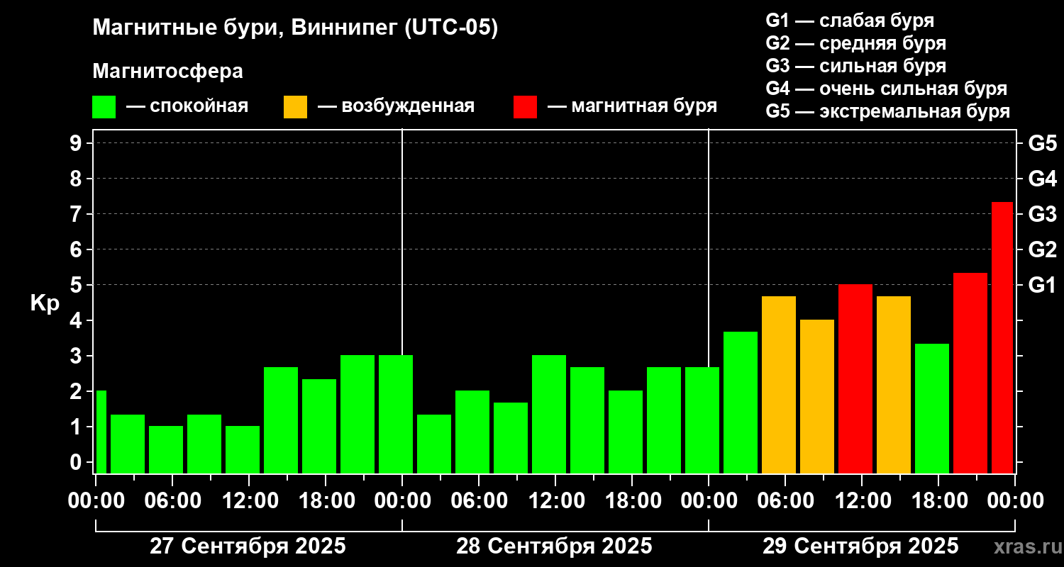 Магнитные бури в Виннипеге — 29 сентября 2025 года