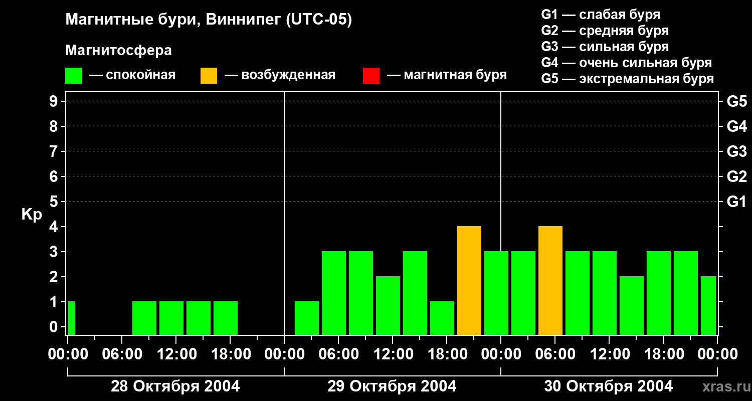 Магнитные бури в Виннипеге — 30 октября 2004 года