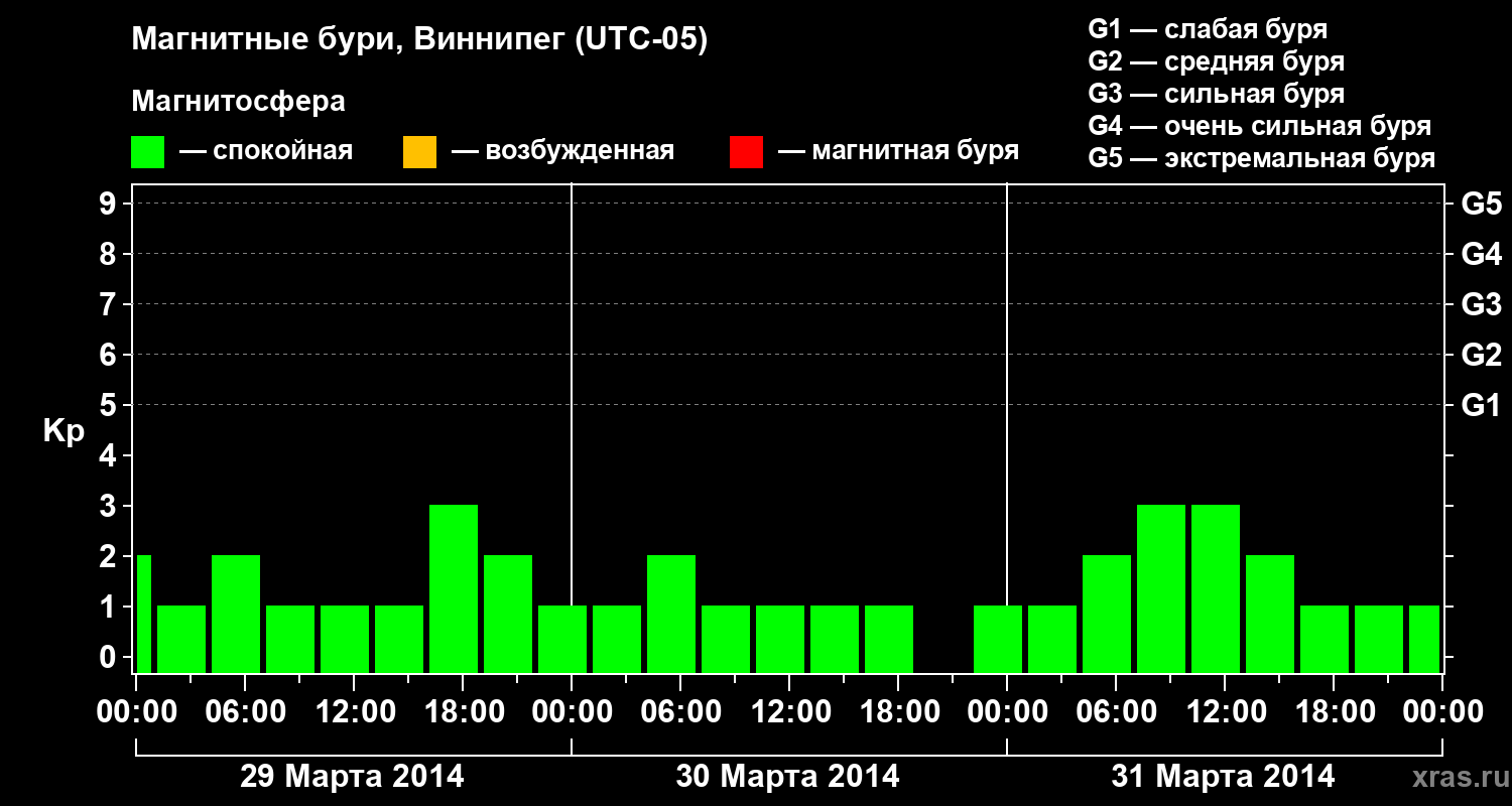 Магнитные бури в Виннипеге — 31 марта 2014 года