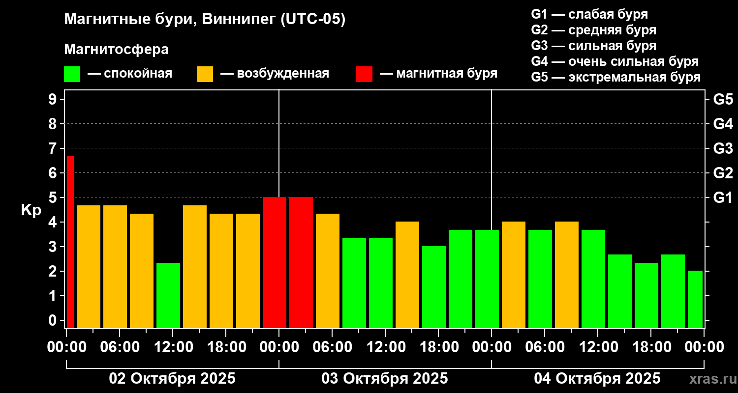 Магнитные бури в Виннипеге — 4 октября 2025 года