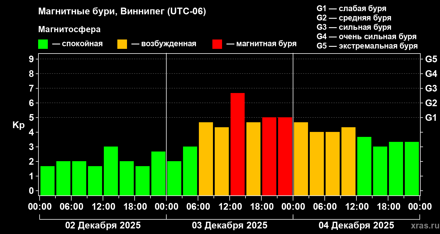 Магнитные бури в Виннипеге — 4 декабря 2025 года