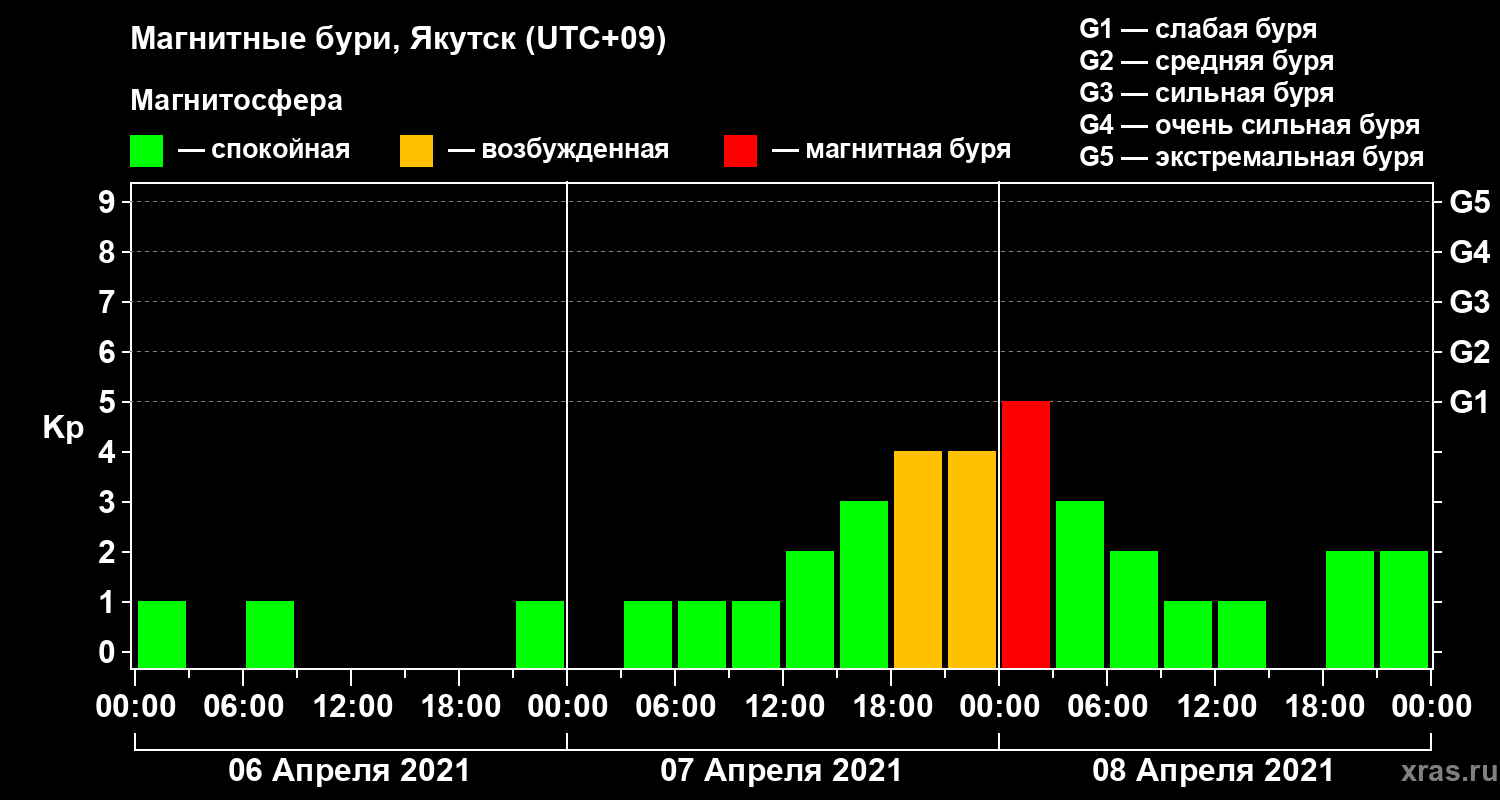 Магнитные бури в Якутске — 8 апреля 2021 года