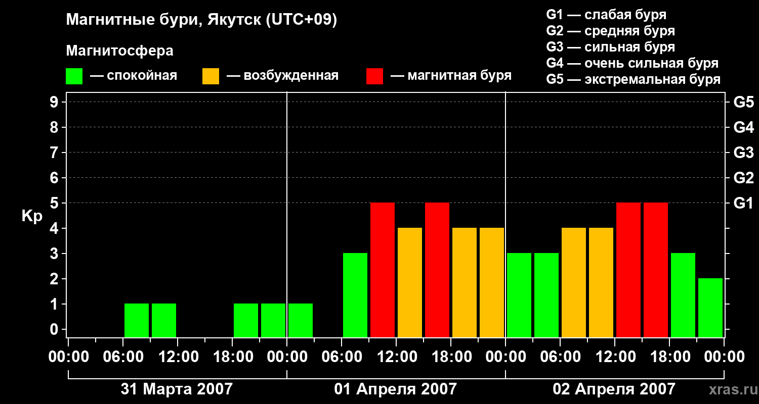 Магнитные бури в Якутске — 2 апреля 2007 года