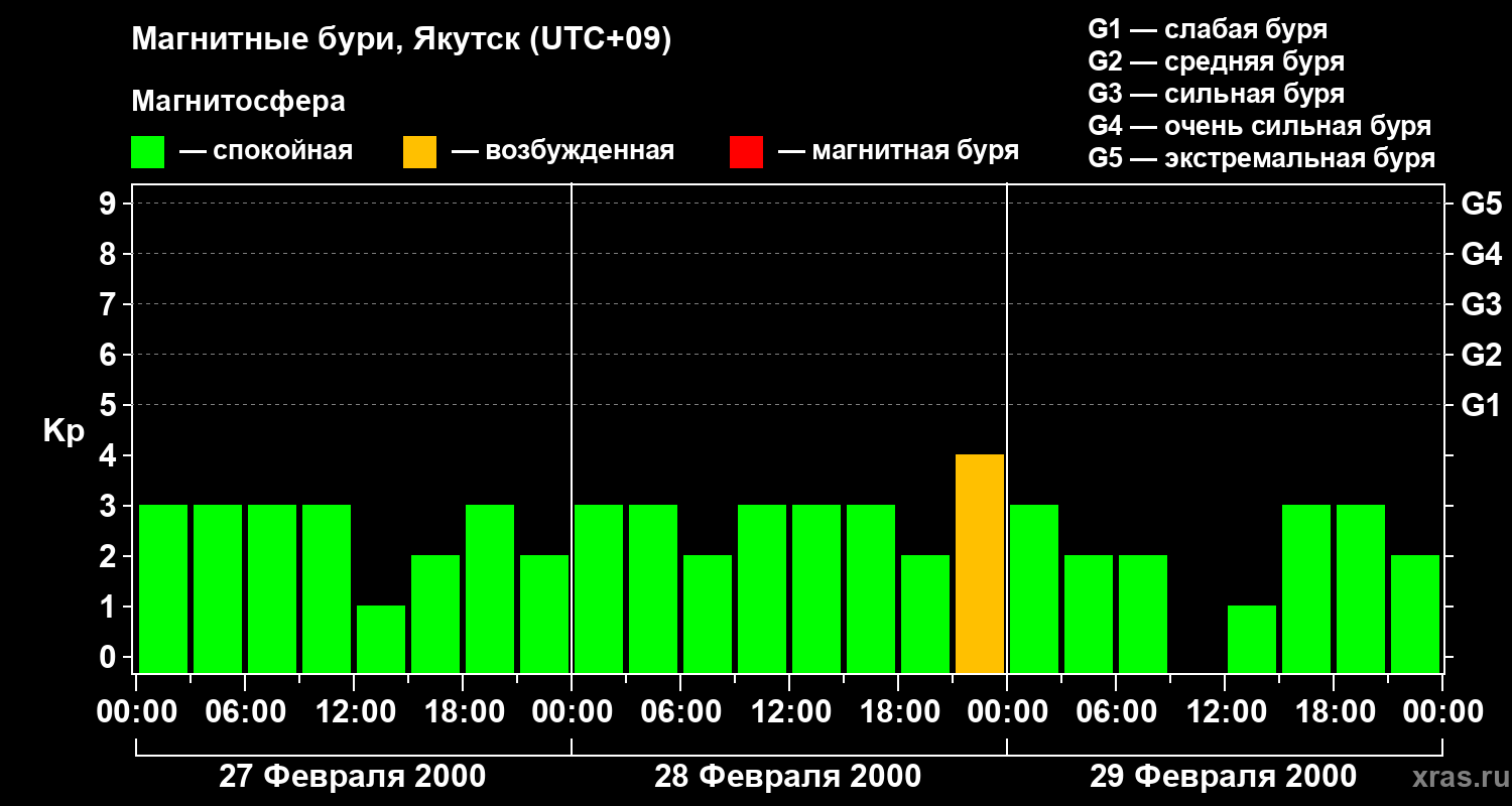 Магнитные бури в Якутске — 29 февраля 2000 года