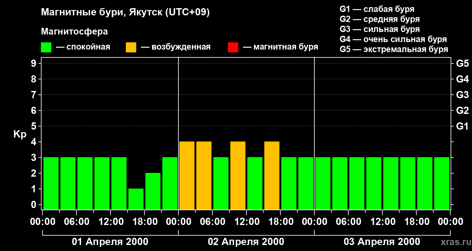 Магнитные бури в Якутске — 3 апреля 2000 года