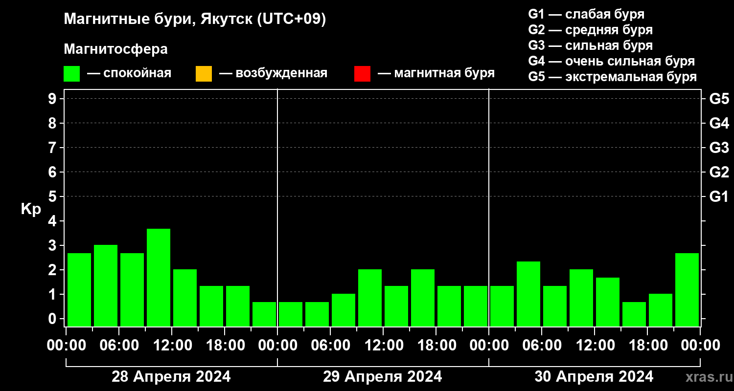 Магнитные бури в Якутске — 30 апреля 2024 года