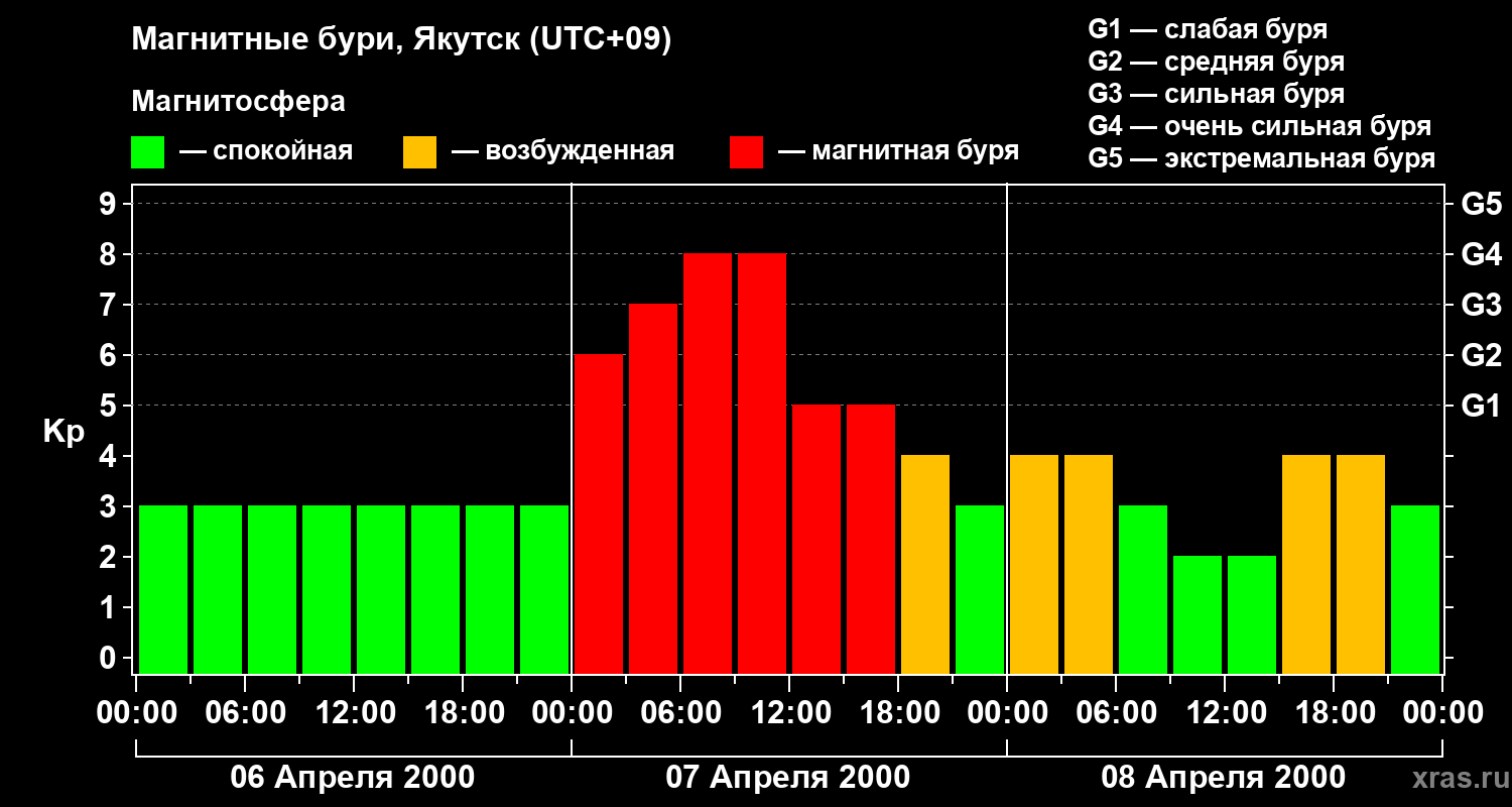 Магнитные бури в Якутске — 8 апреля 2000 года