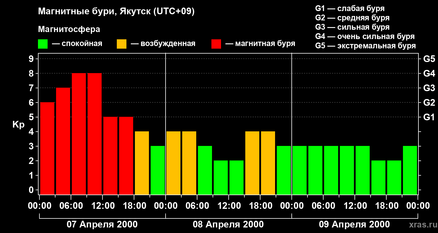 Магнитные бури в Якутске — 9 апреля 2000 года