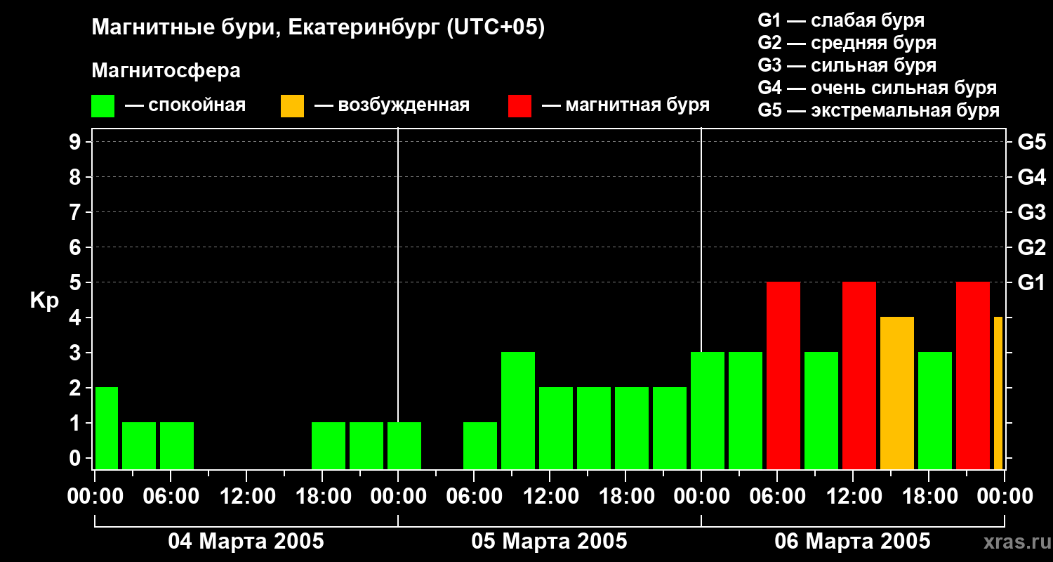 Магнитные бури в Екатеринбурге — 6 марта 2005 года