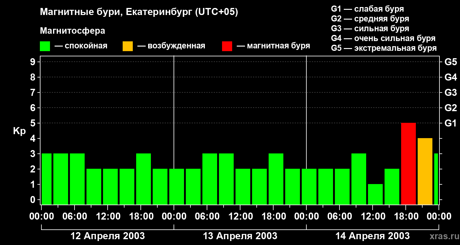 Магнитные бури в Екатеринбурге — 14 апреля 2003 года