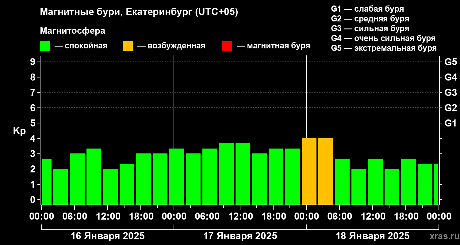 Магнитные бури в Екатеринбурге — 18 января 2025 года