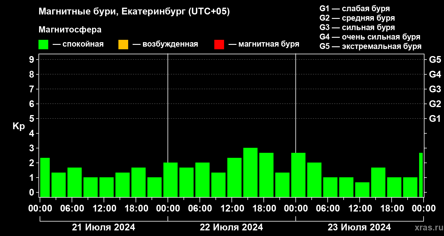 Магнитные бури в Екатеринбурге 23 июля 2024 года
