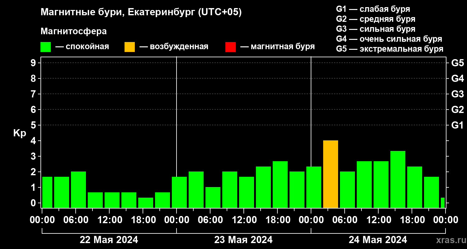 Магнитные бури в Екатеринбурге — 24 мая 2024 года