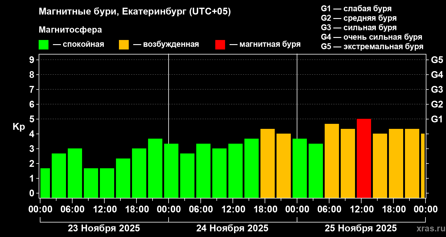 Магнитные бури в Екатеринбурге 25 ноября 2025 года