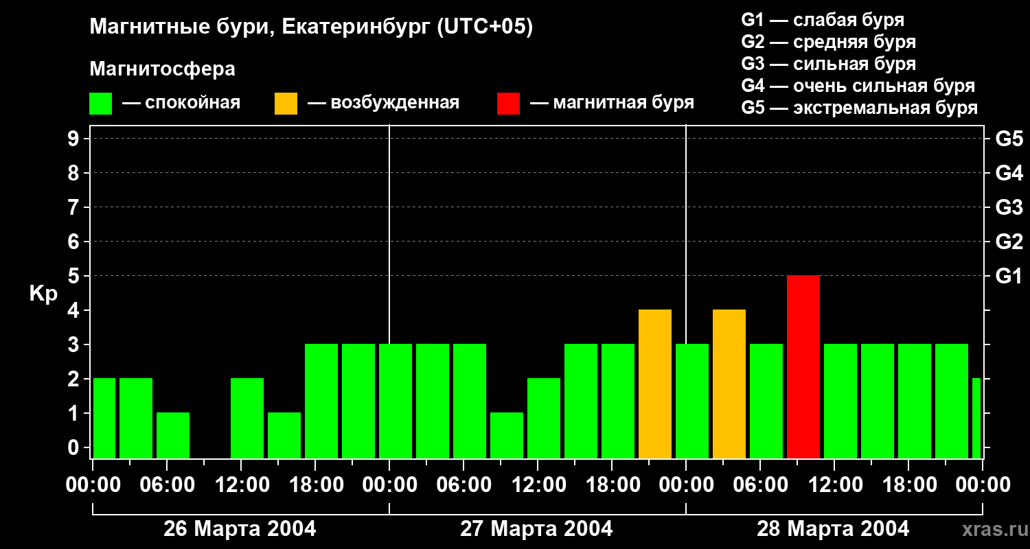 Магнитные бури в Екатеринбурге — 28 марта 2004 года