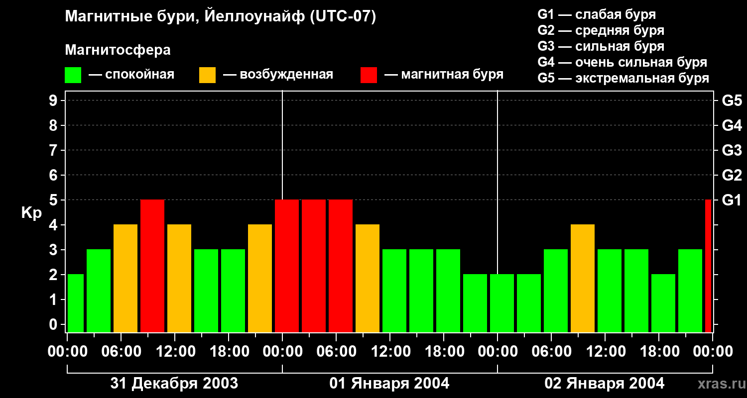 Магнитные бури в Йеллоунайфе 2 января 2004 года