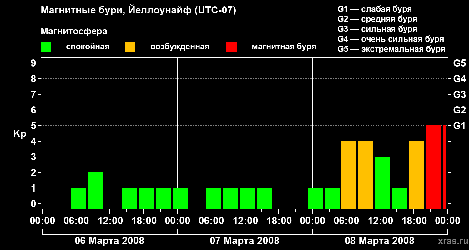 Магнитные бури в Йеллоунайфе — 8 марта 2008 года