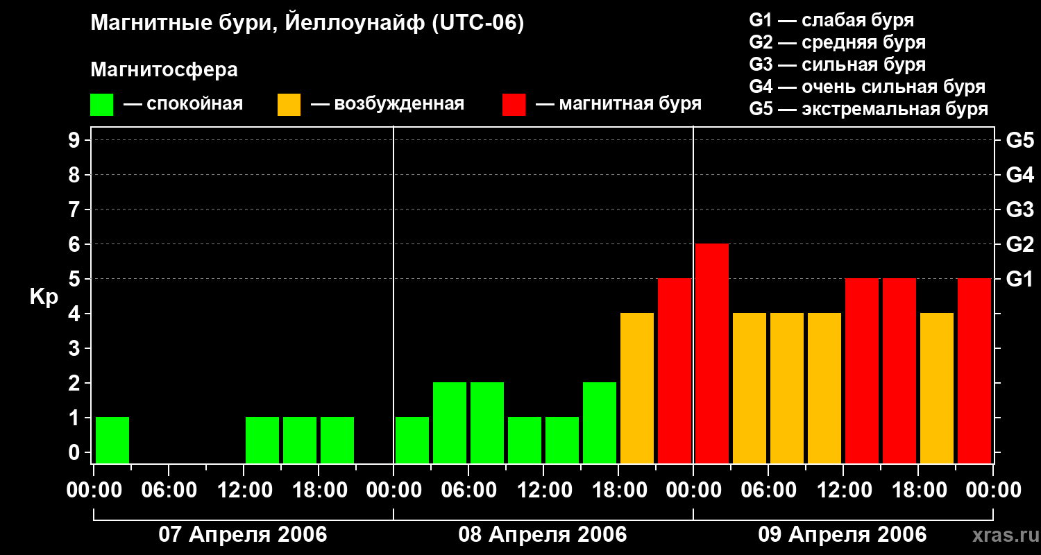 Магнитные бури в Йеллоунайфе 9 апреля 2006 года