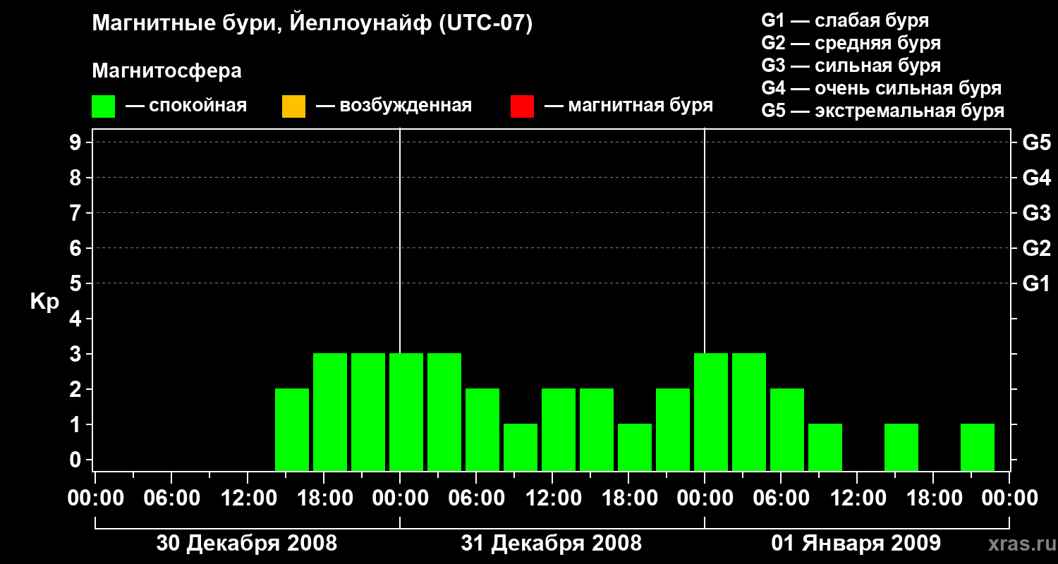 Магнитные бури в Йеллоунайфе — 1 января 2009 года