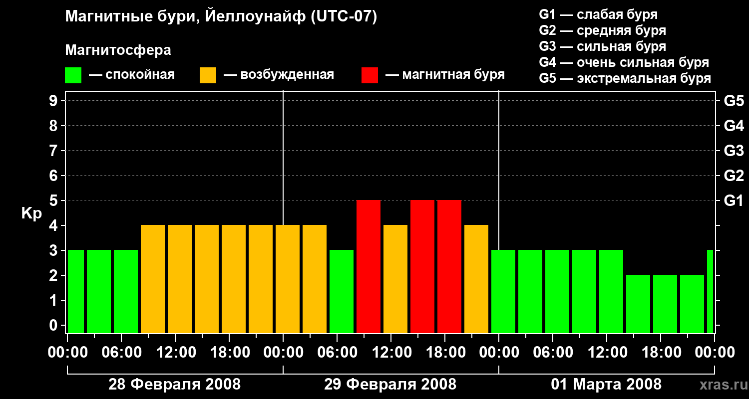 Магнитные бури в Йеллоунайфе 1 марта 2008 года