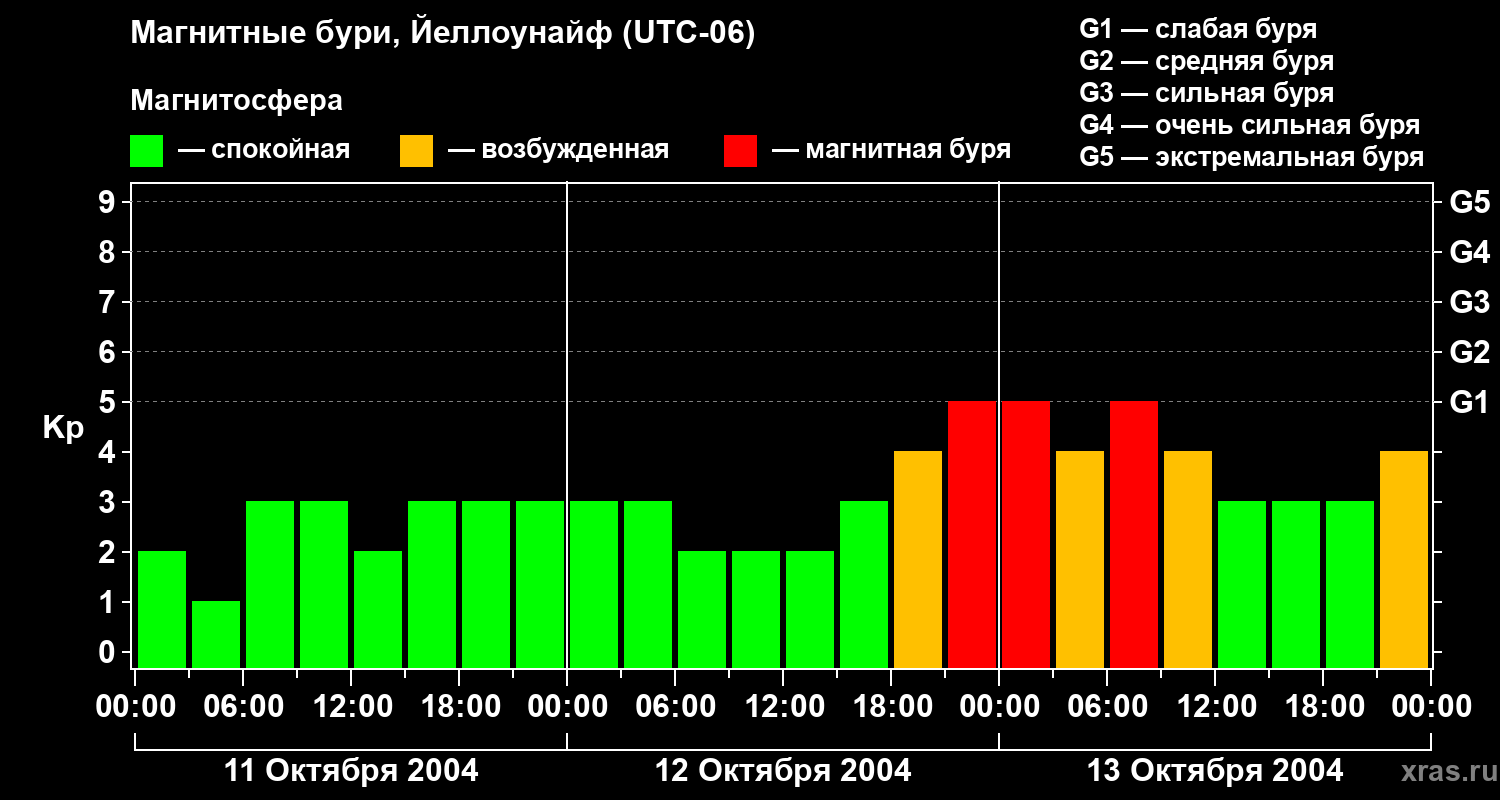 Магнитные бури в Йеллоунайфе 13 октября 2004 года
