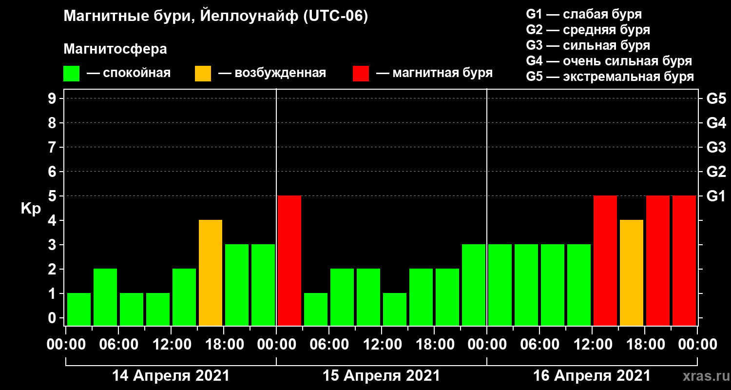 Магнитные бури в Йеллоунайфе 16 апреля 2021 года