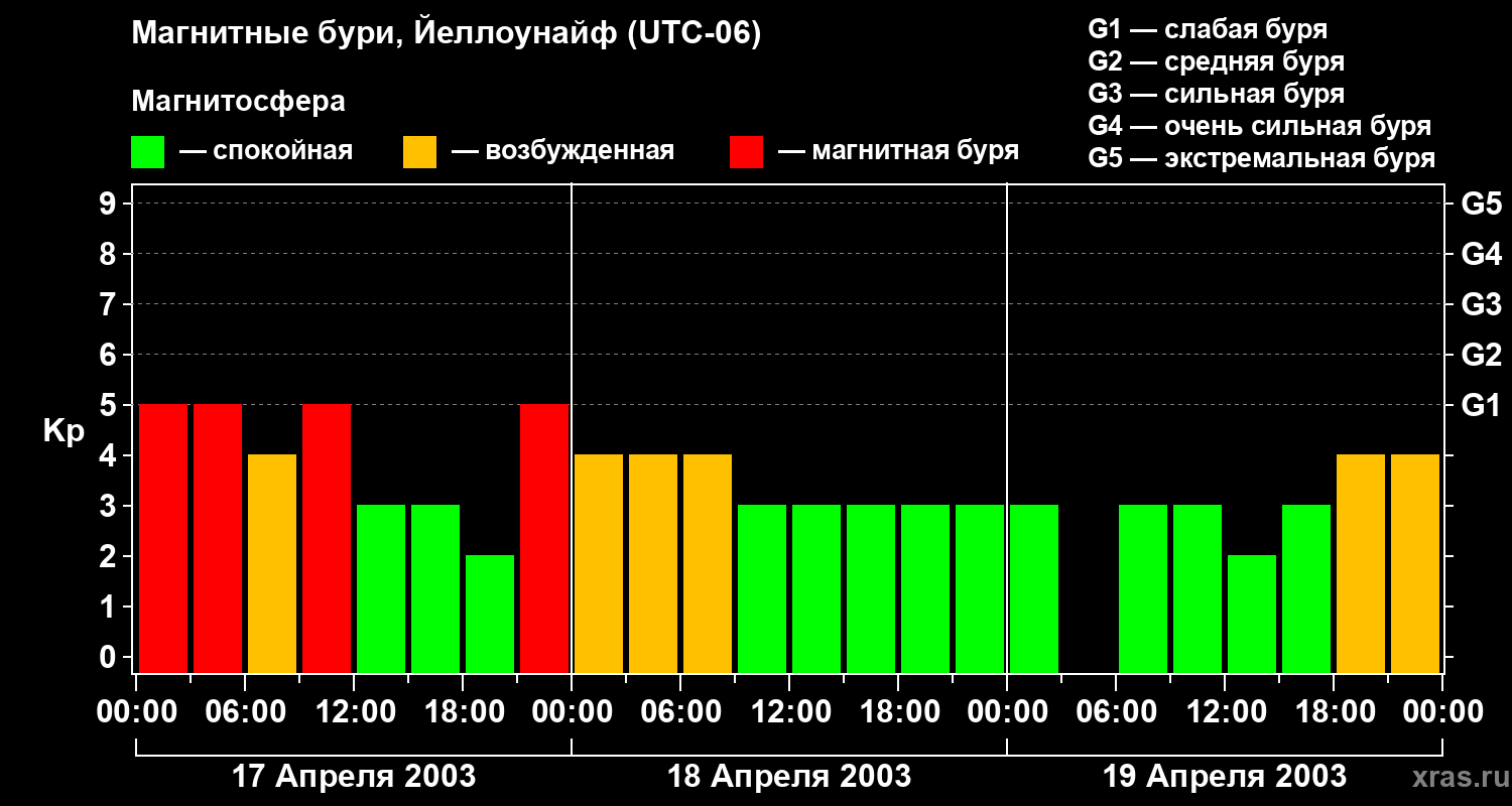 Магнитные бури в Йеллоунайфе 19 апреля 2003 года