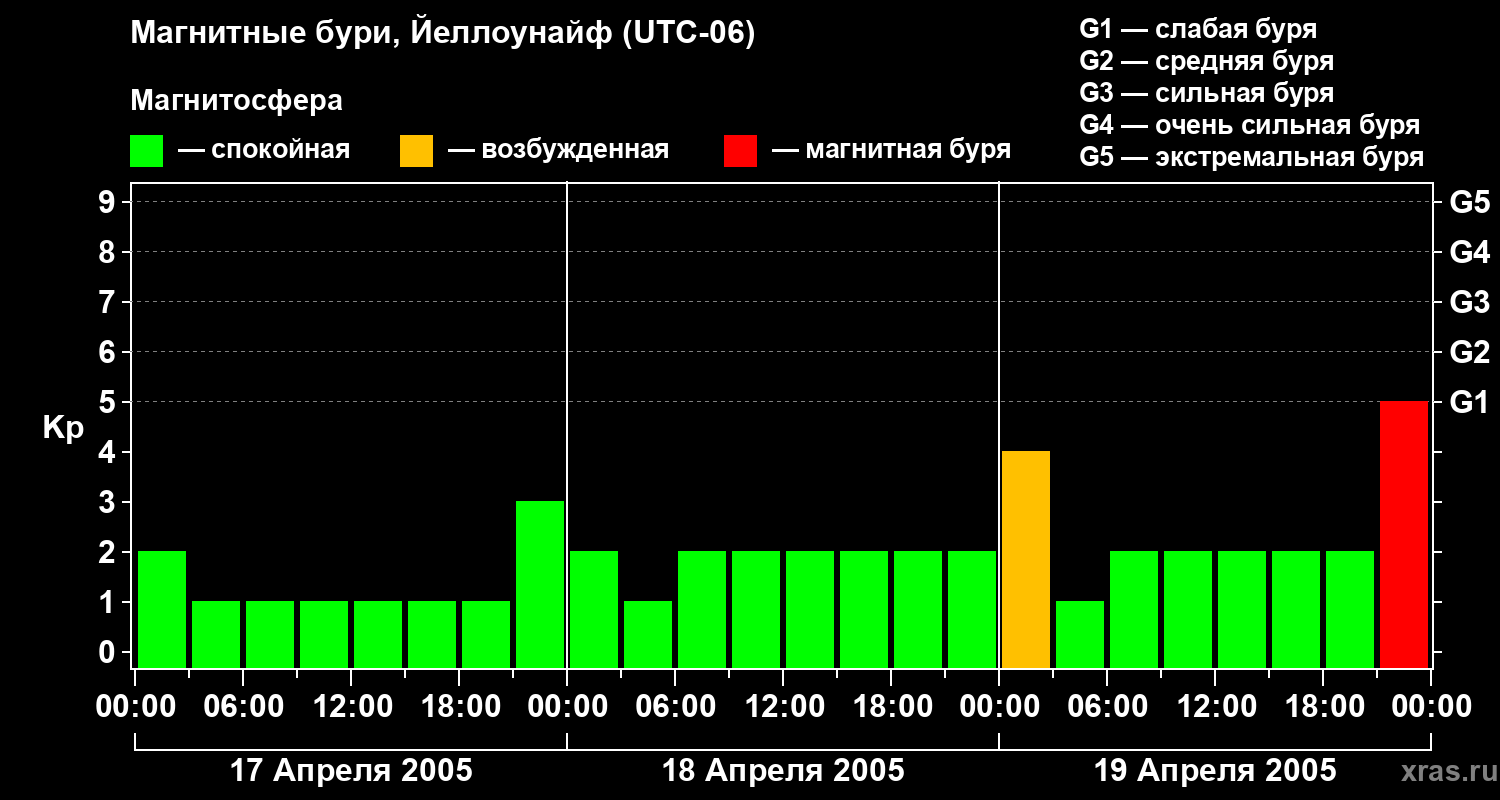 Магнитные бури в Йеллоунайфе — 19 апреля 2005 года
