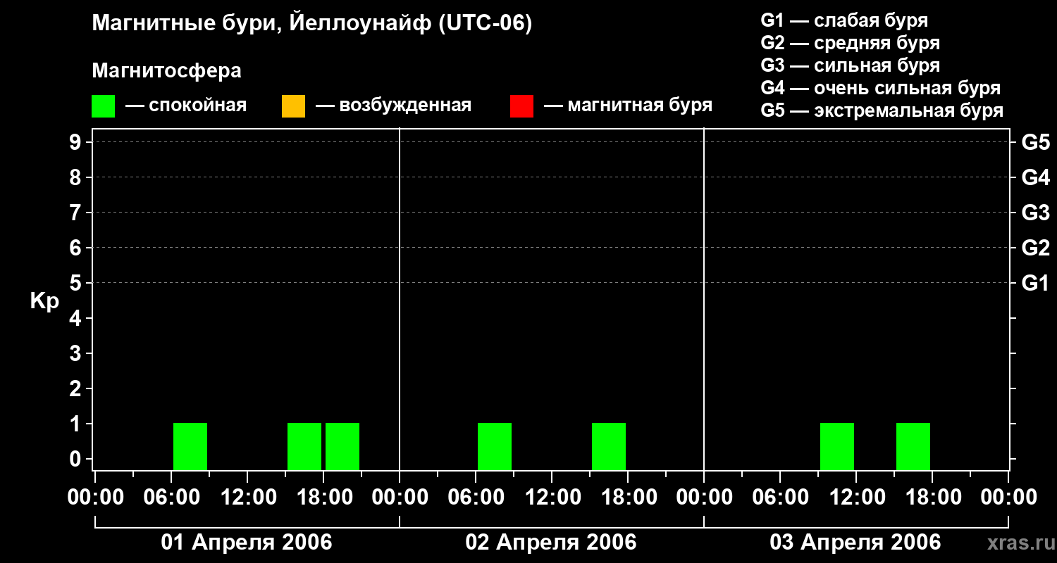 Изменения геомагнитного индекса Kp с 1 по 3 апреля 2006 года для средних широт