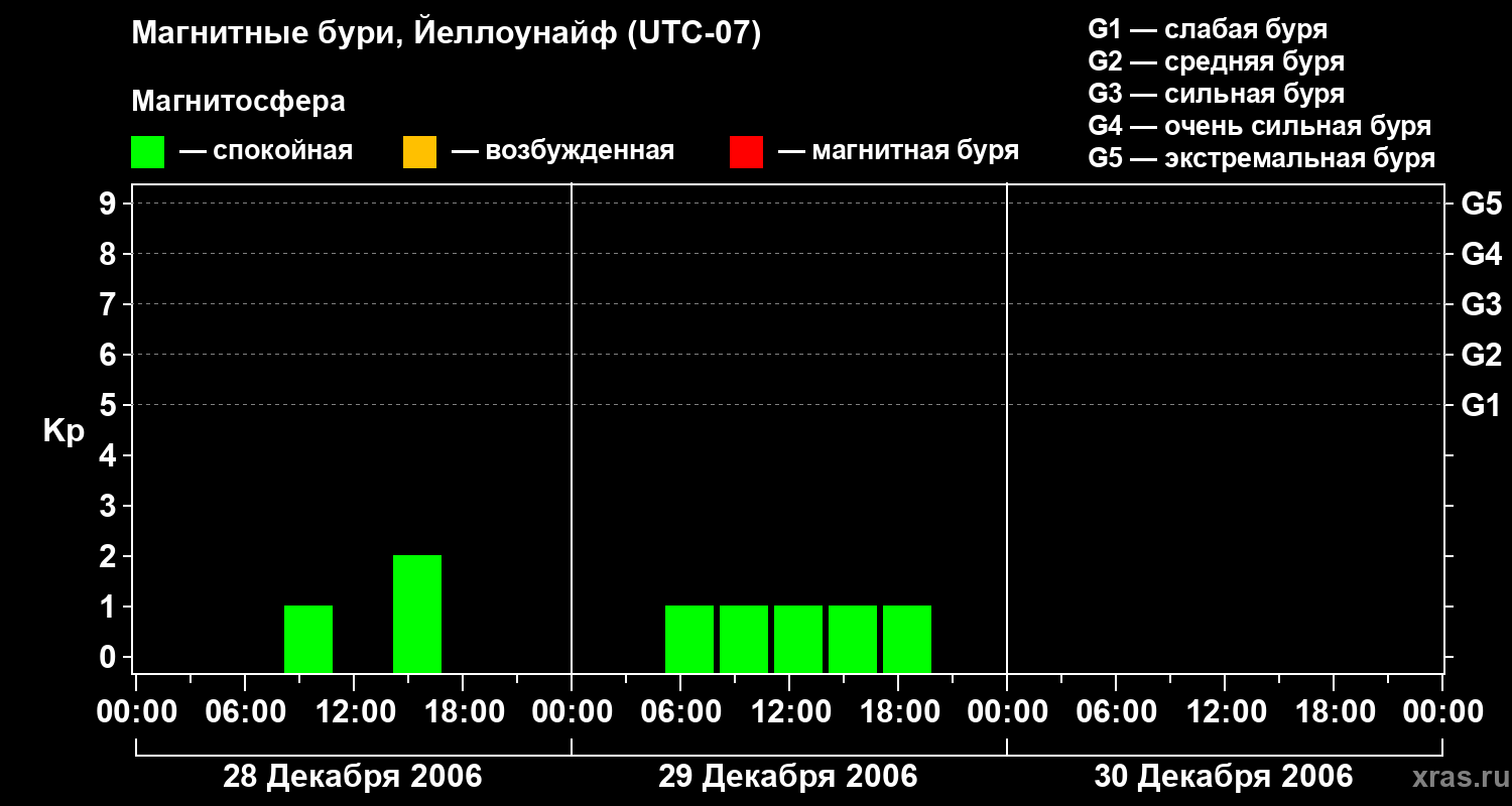 Изменения геомагнитного индекса Kp с 28 по 30 декабря 2006 года для средних широт