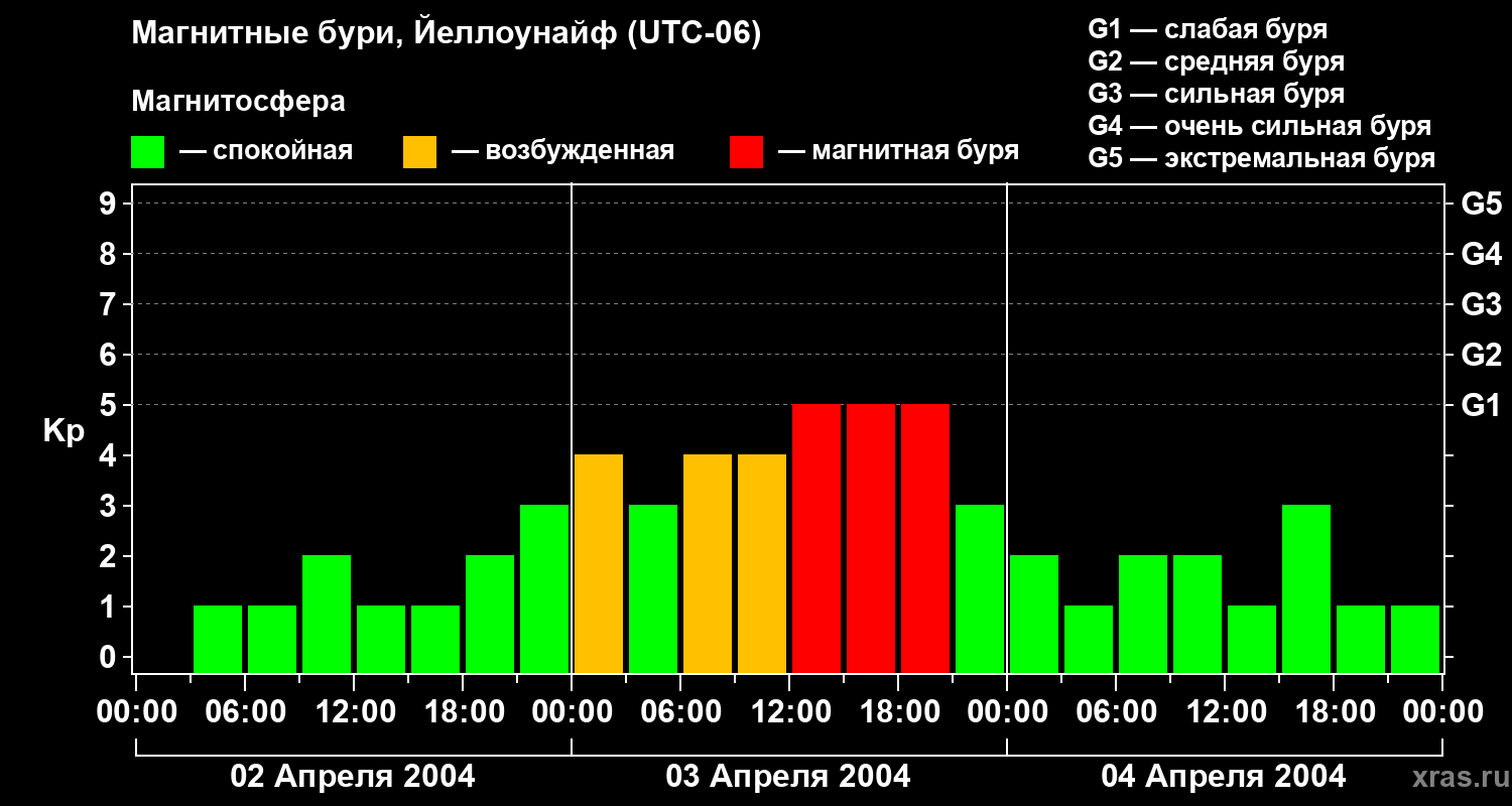 Магнитные бури в Йеллоунайфе 4 апреля 2004 года