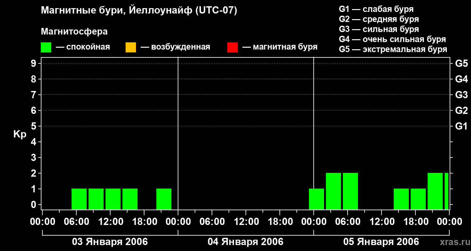 Изменения геомагнитного индекса Kp с 3 по 5 января 2006 года для средних широт