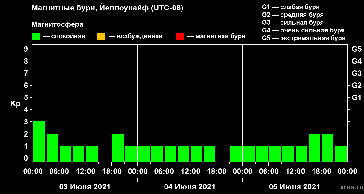 Магнитные бури в Йеллоунайфе 5 июня 2021 года