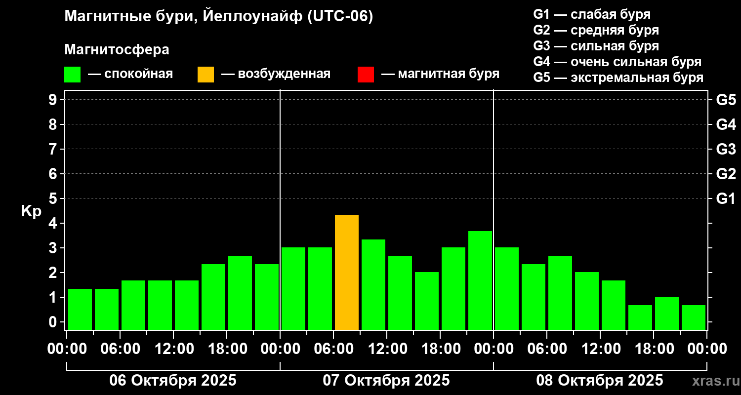 Магнитные бури в Йеллоунайфе 8 октября 2025 года