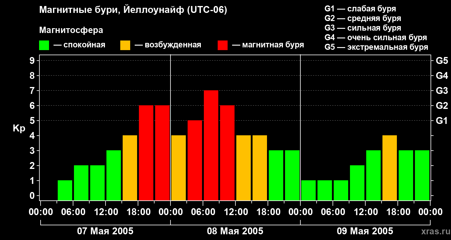Магнитные бури в Йеллоунайфе — 9 мая 2005 года