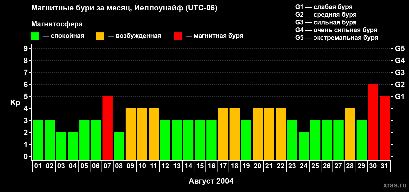31 августа 2004 года — Магнитная буря уровня G1