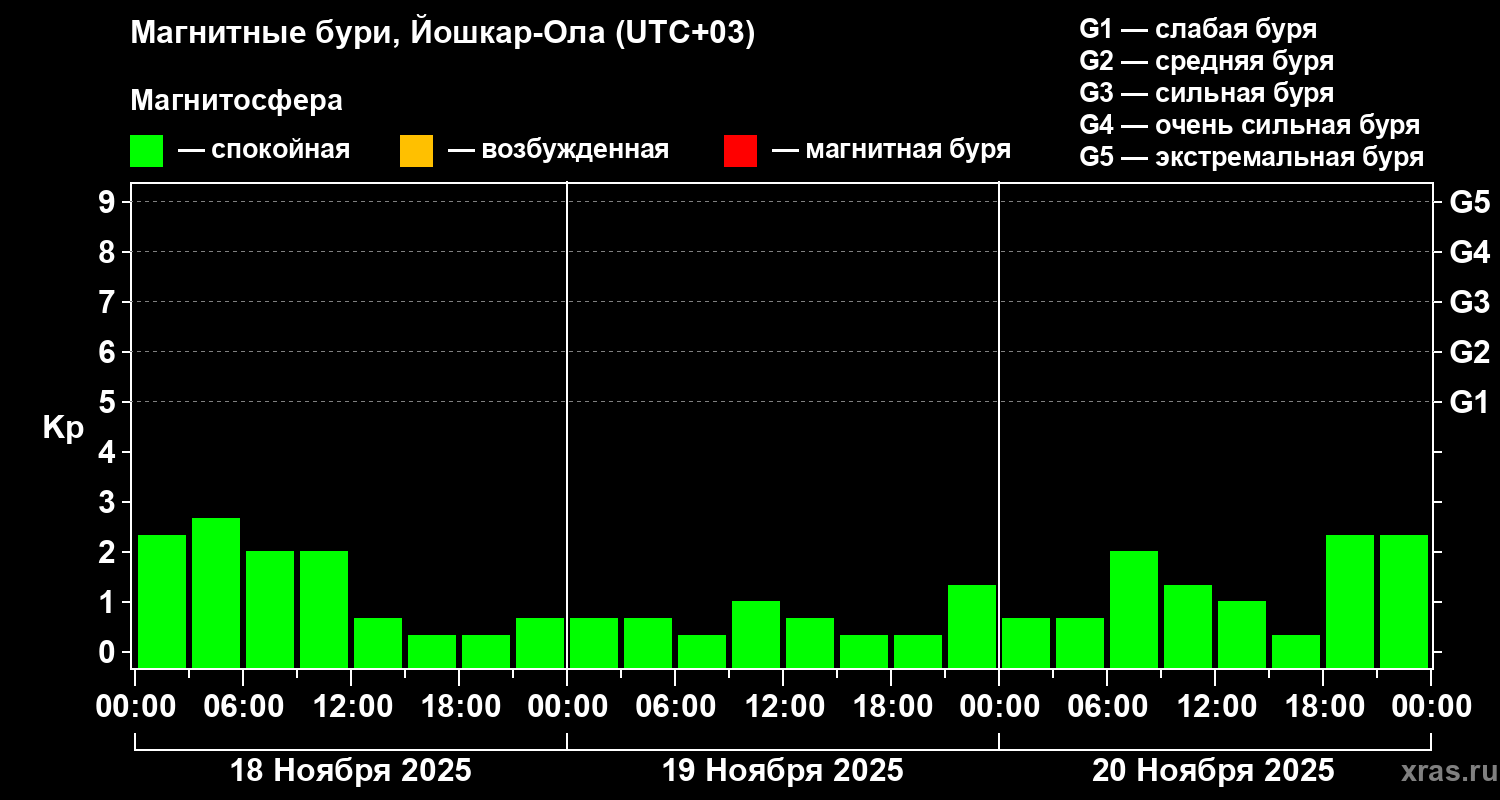 Магнитные бури в Йошкар-Оле — 20 ноября 2025 года