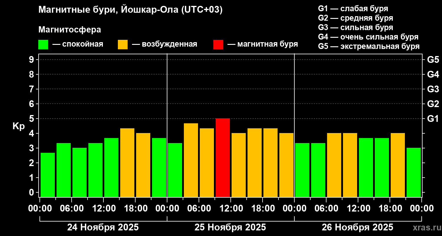 Магнитные бури в Йошкар-Оле — 26 ноября 2025 года
