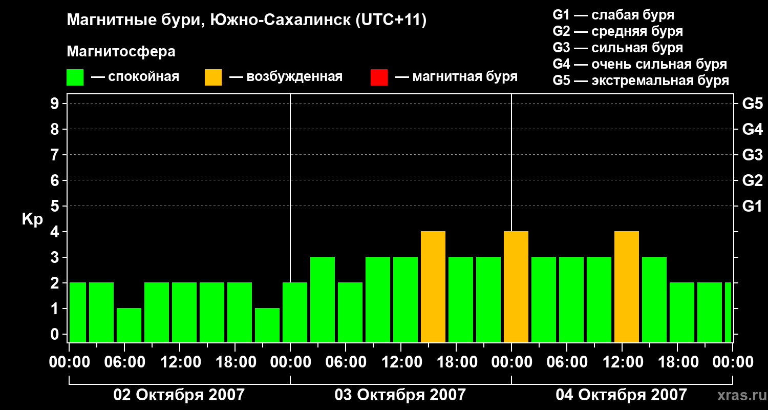 Магнитные бури в Южно-Сахалинске — 4 октября 2007 года