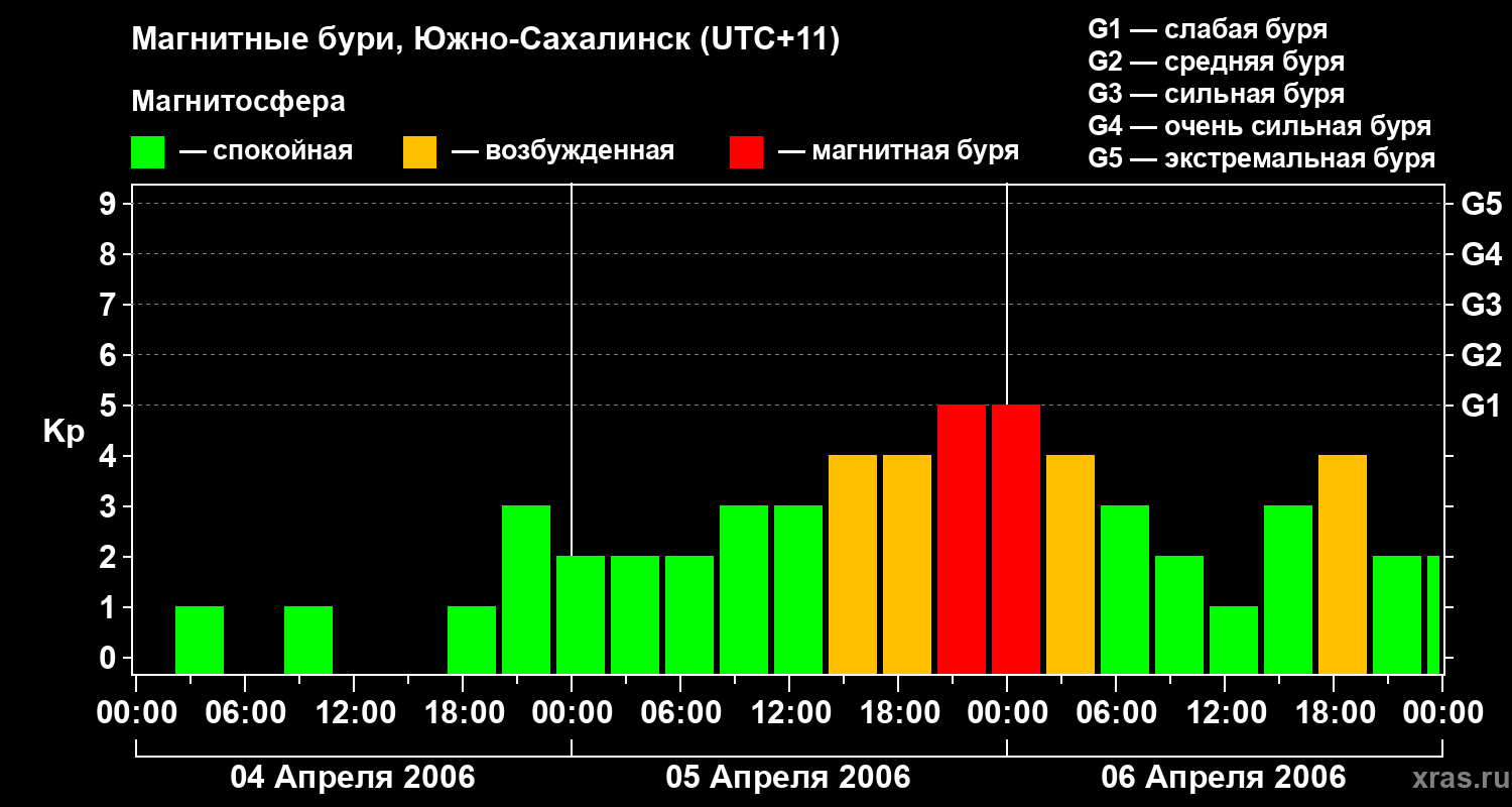 Магнитные бури в Южно-Сахалинске — 6 апреля 2006 года