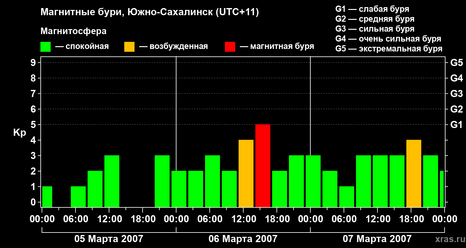 Магнитные бури в Южно-Сахалинске — 7 марта 2007 года