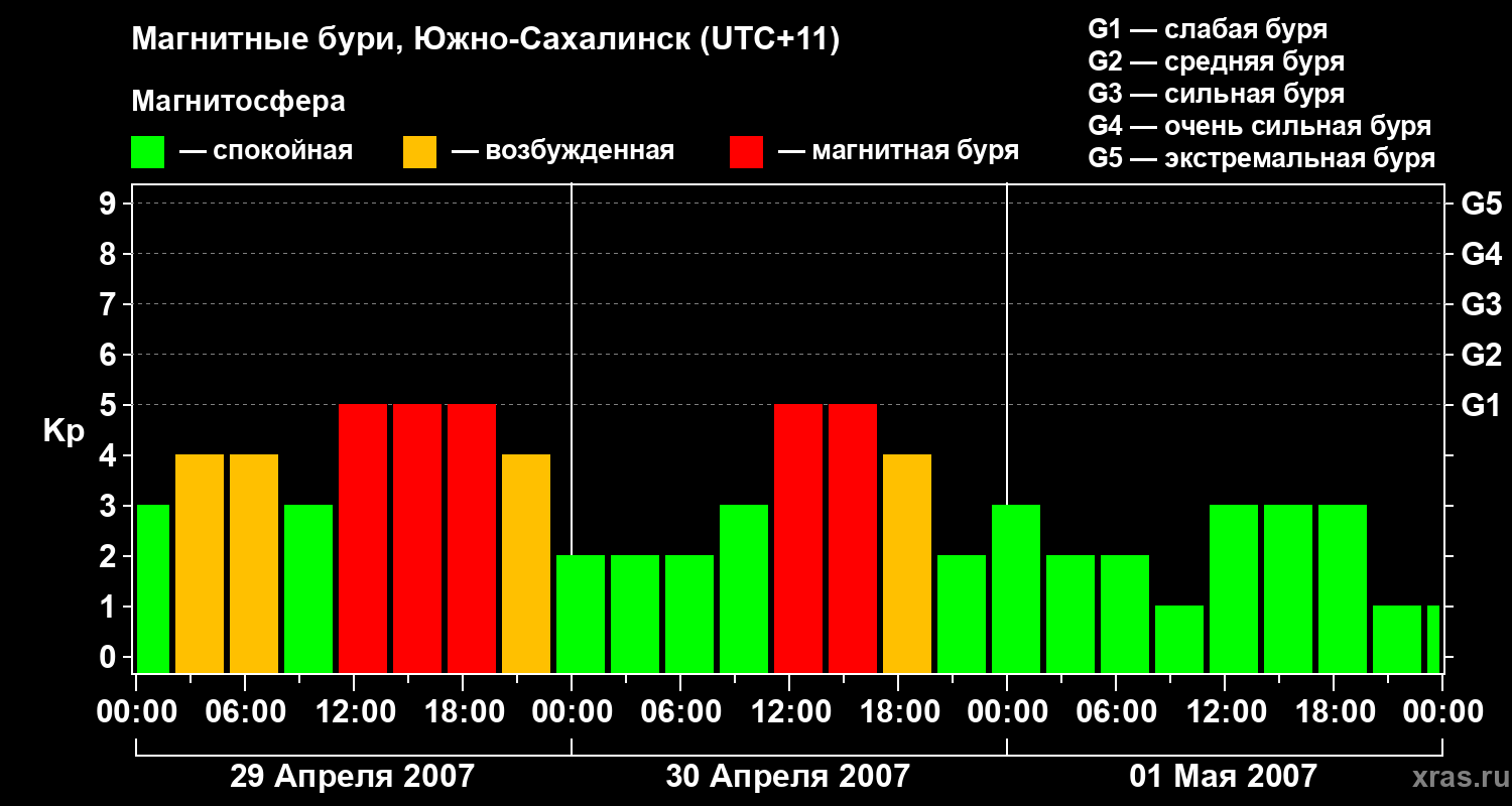 Магнитные бури в Южно-Сахалинске — 1 мая 2007 года