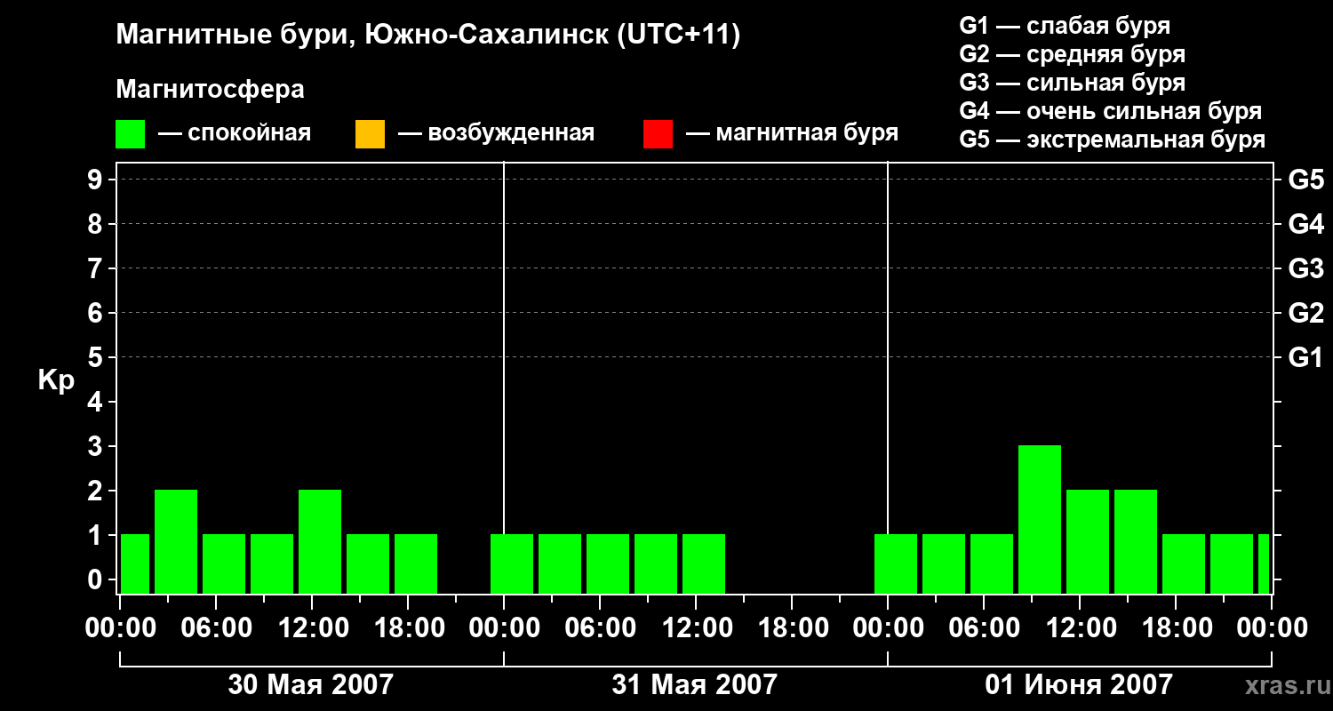 Магнитные бури в Южно-Сахалинске — 1 июня 2007 года