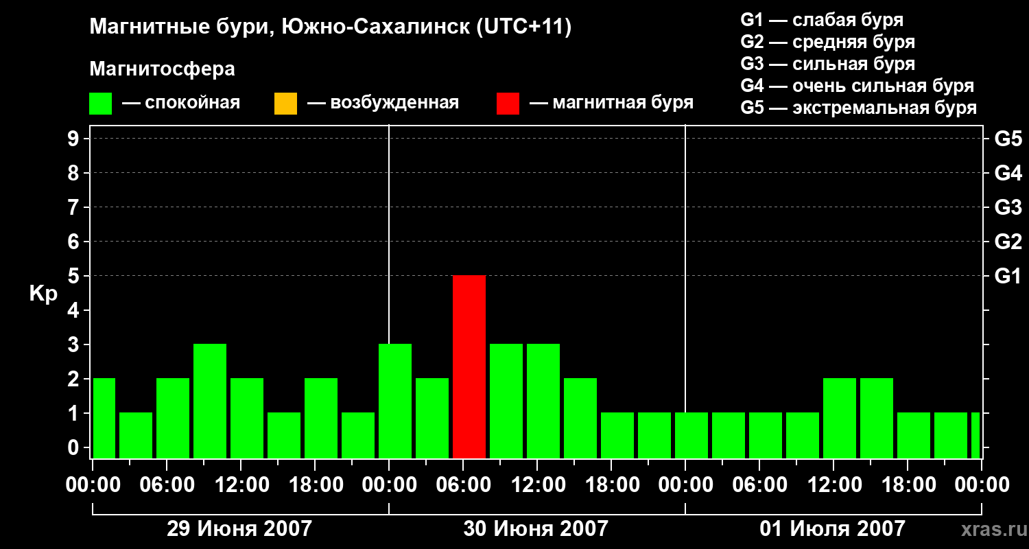 Магнитные бури в Южно-Сахалинске — 1 июля 2007 года